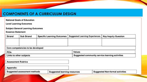 components of cbc curriculum pdf