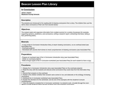 conclusion in lesson plan example