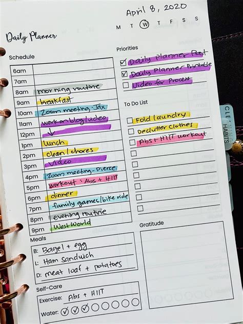 daily plan ideas